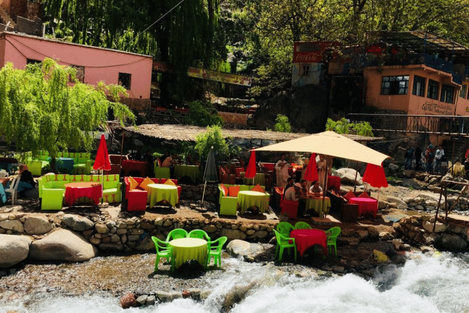 Excursion Ourika depuis Marrakech ; Explorez les magnifiques paysages de la vallée de l'Ourika, en plein cœur du grand Atlas, lors d'une excursion d'une journée au départ de Marrakech. Découvrez les jardins bio-aromatiques de l'Ourika, rendez visite à une famille berbère dans son foyer, et visitez le marché hebdomadaire berbère pour une expérience culturelle authentique.